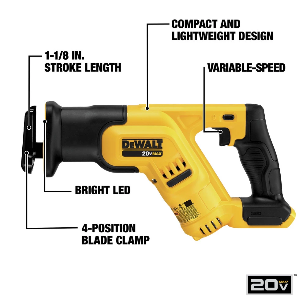 - The Dewalt DCS387B 20V MAX Compact Cordless Reciprocating Saw is a high-performance tool designed for professionals and DIY enthusiasts. Its compact and lightweight design ensures ease of use in tight spaces.