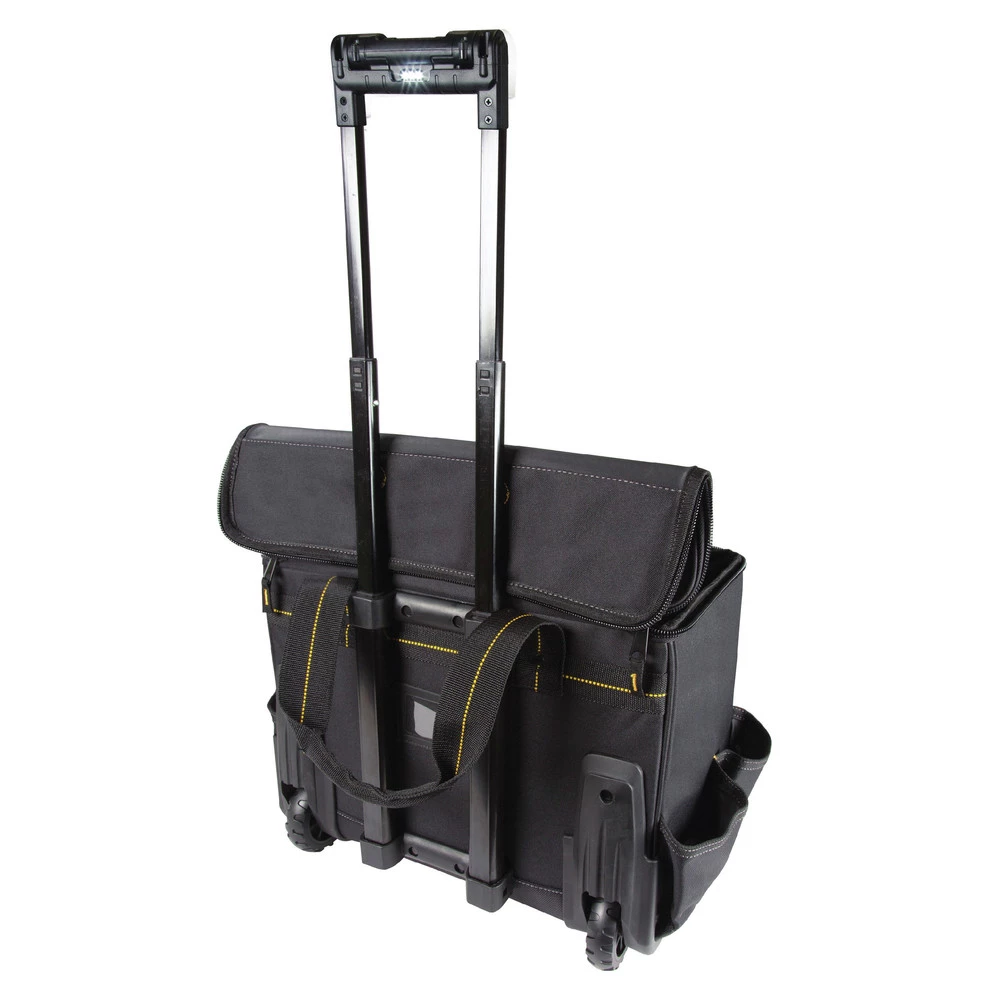 - Equipped with a bright LED light on the handle, this roller bag provides enhanced visibility in low-light conditions, making it easier to locate tools and navigate worksites safely.