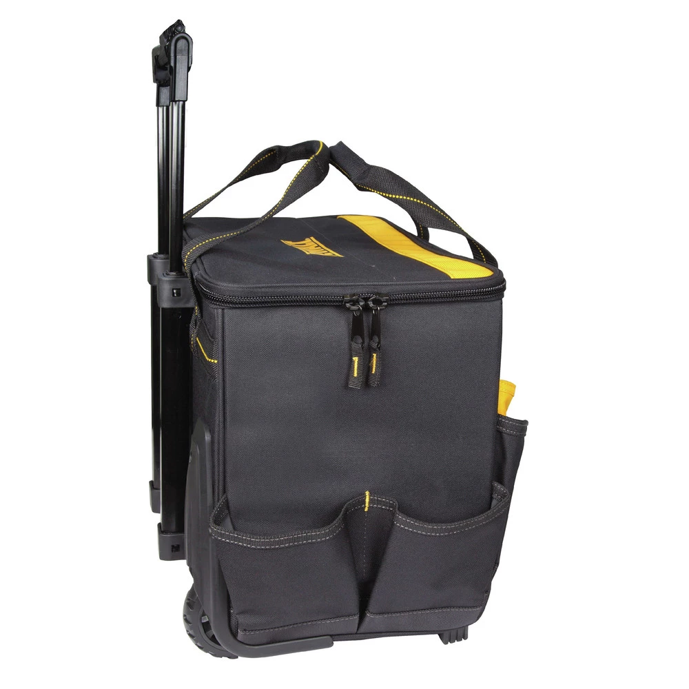 - The retractable handle and smooth-rolling wheels ensure effortless mobility, while the ergonomic design reduces strain during transport. Ideal for contractors, electricians, and DIY enthusiasts.