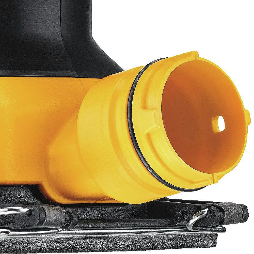 - Includes a 1/4 sheet sandpaper holder for quick and easy paper changes, and a dust collection port to keep your workspace clean and debris-free.