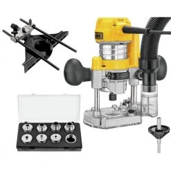 Dewalt DW618B3 120V 12 Amp Brushed 2-1/4 HP Corded Three Base Router Kit – Woodworking Power Tool